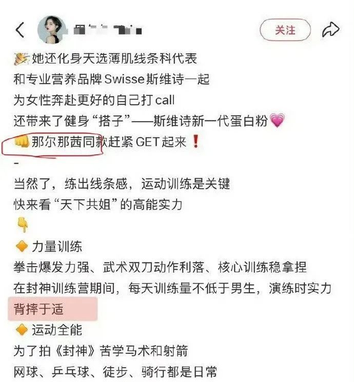 2025年4月初,Swisse曾官宣那尔那茜为其品牌大使。目前,该条博文已不可见。